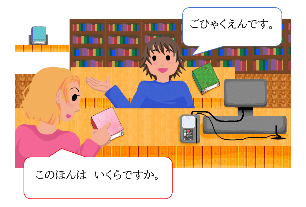 In the textbooks, you will practise the sentence pattern この/その/あの + nounは (price)です, which is often used when buying things, so let’s master this sentence pattern first!