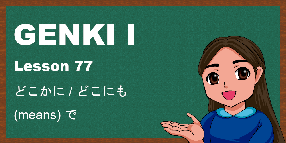 This lesson teaches the variations of 何(なに)か and 何(なに)も studied in Lesson 8, as well as expressions using the particle で.