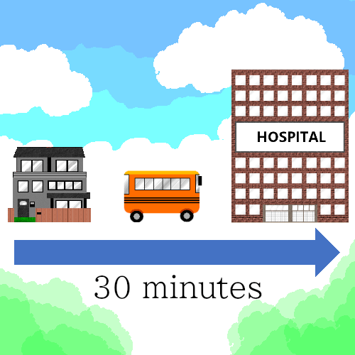 例(れい):うち → 学校(がっこう) ― 30 minutes