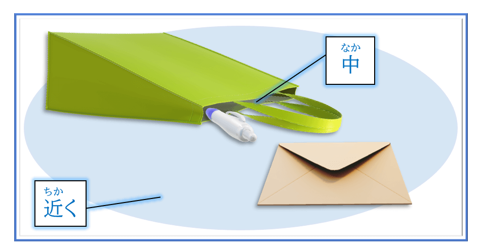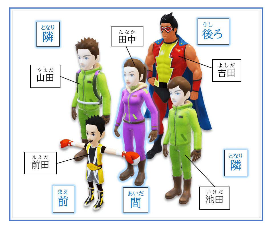 前(まえ)、後(うし)ろ、隣(となり)、間(あいだ)