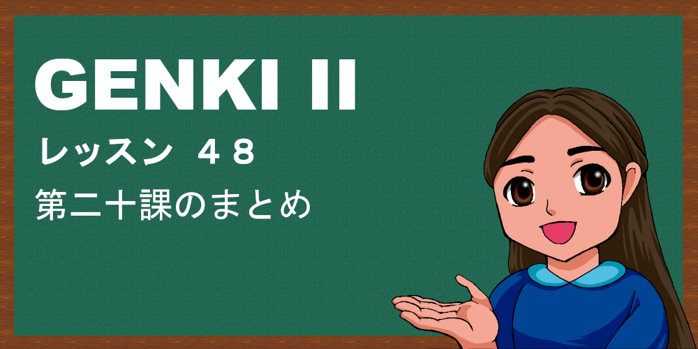 今回(こんかい)のレッスンは、第二十課(だいにじゅっか)のまとめです。