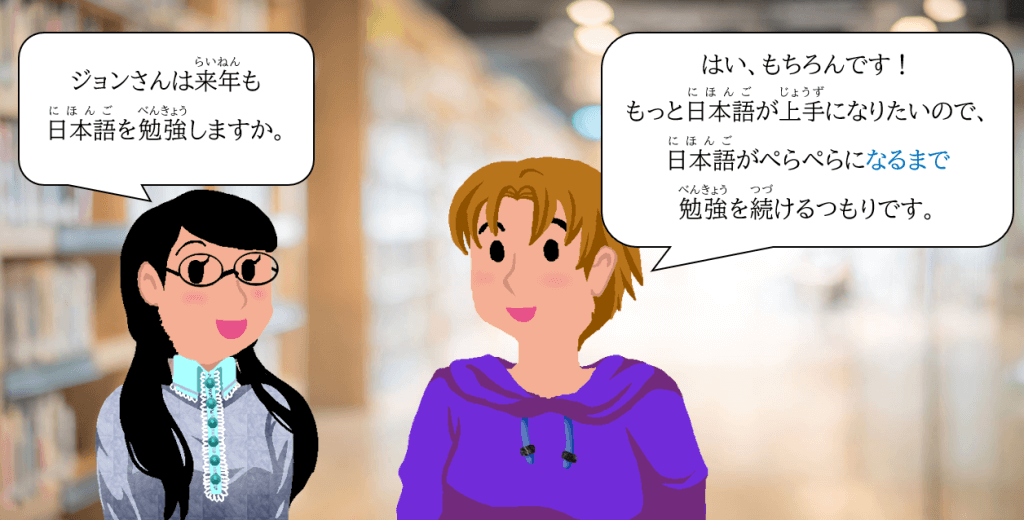 This time, we will practise grammar using the dictionary form of verbs and まで to show how long you can continue the action.